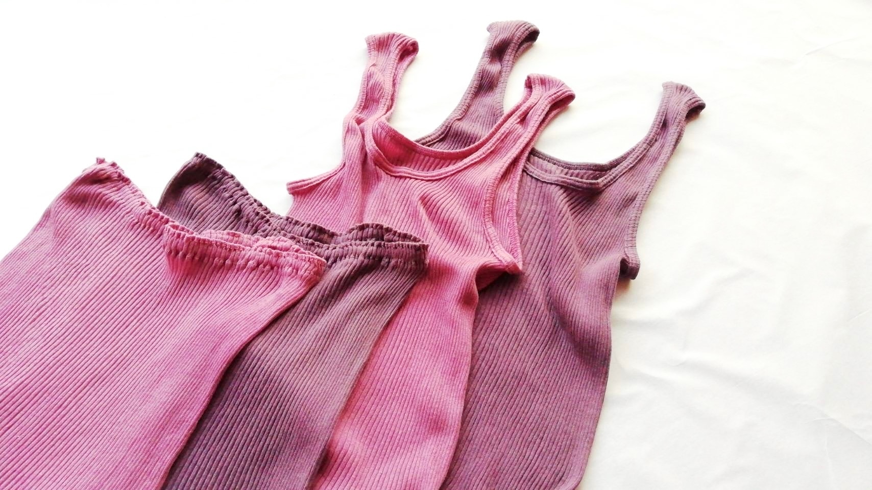 自然の営みに支えられたシンプルな暮らしの中で、nanadecorでも即完売してしまう茜染めや草木染めのランジェリーが、奈央さんの感性でこっくりと染められています。